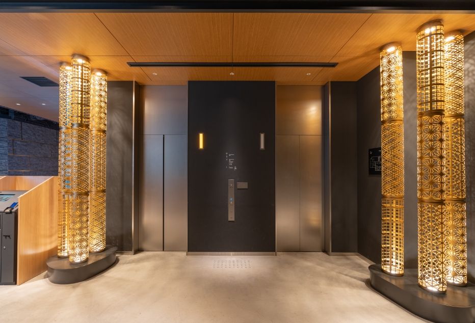 柱や壁には熊本の伝統工芸品である竹細工や肥後象眼を駆使したインテリアを配置しています。繊細できらびやかな意匠が、訪れる旅人を非日常へと誘います。