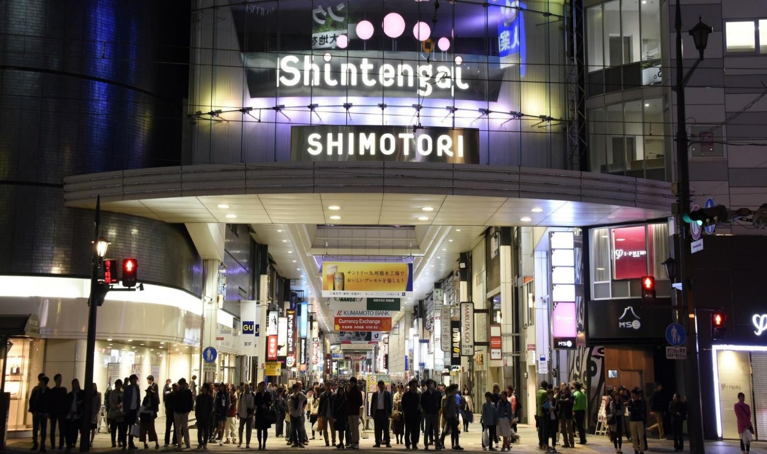 ホテルから徒歩3分の場所にある「下通アーケード」は、熊本一活気あふれるショッピング&グルメ街。